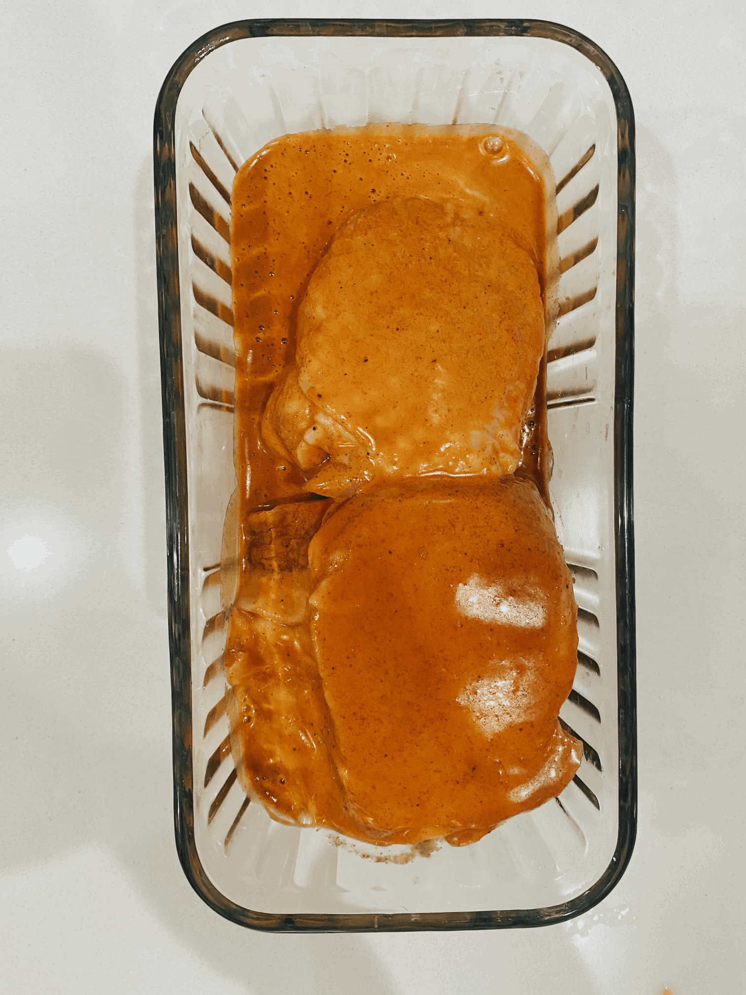 2. Place 4 pounds chicken thighs in a large baking dish that has a lid, or in a large ziploc. Pour marinade over all of the chicken, ensuring that every piece is coated.
